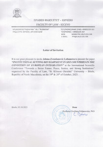 Zvezdanović Lobanova, Jelena and Maksimović, Marijana and Kelić, Vasko (2024) Institutional setting development in SEE countries in the condition of european integration. In: Towards a Beter Future: Peace, Justice, and Strong Institutions. University “St. Kliment Ohridski”- Bitola, Faculty of Law - Kicevo, Kičevo, pp. 169-182. ISBN 978-608-4670-24-7